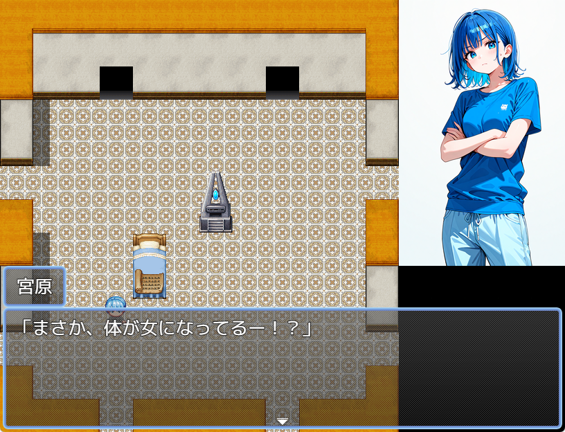 目が覚めると謎の部屋に閉じ込められており、さらに5歩歩くごとに女体化が進んでしまうような状態になってしまった主人公が、脱出を目指すTSF要素のある全年齢ゲームです。