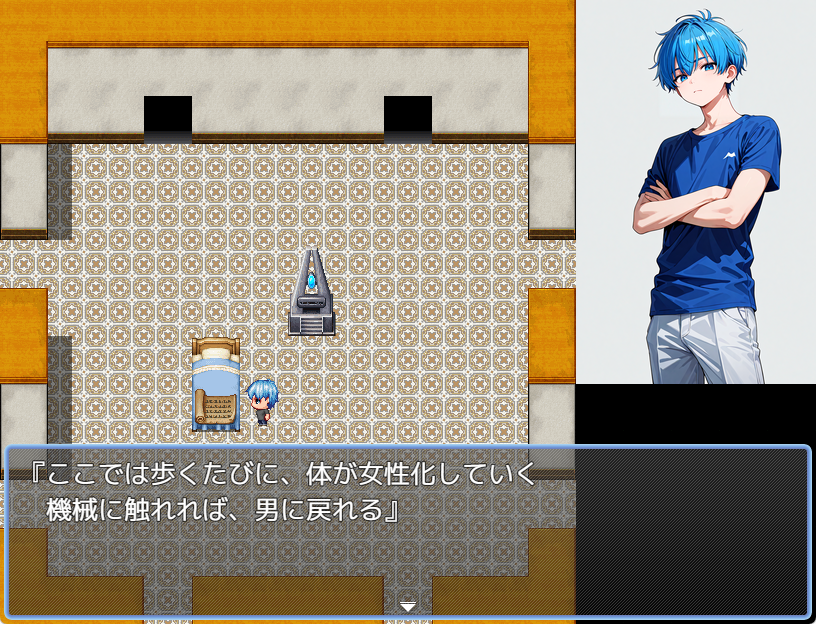 さらに「女体化していく」というところにも注目です。主人公は男性から始まっていきますが、5歩ごとに女性化が進んでしまいます。画面内に表示された立ち絵姿が女性に変わっていく様子は、まさに進行が進んでしまっているような感覚を味あわせてくれます。